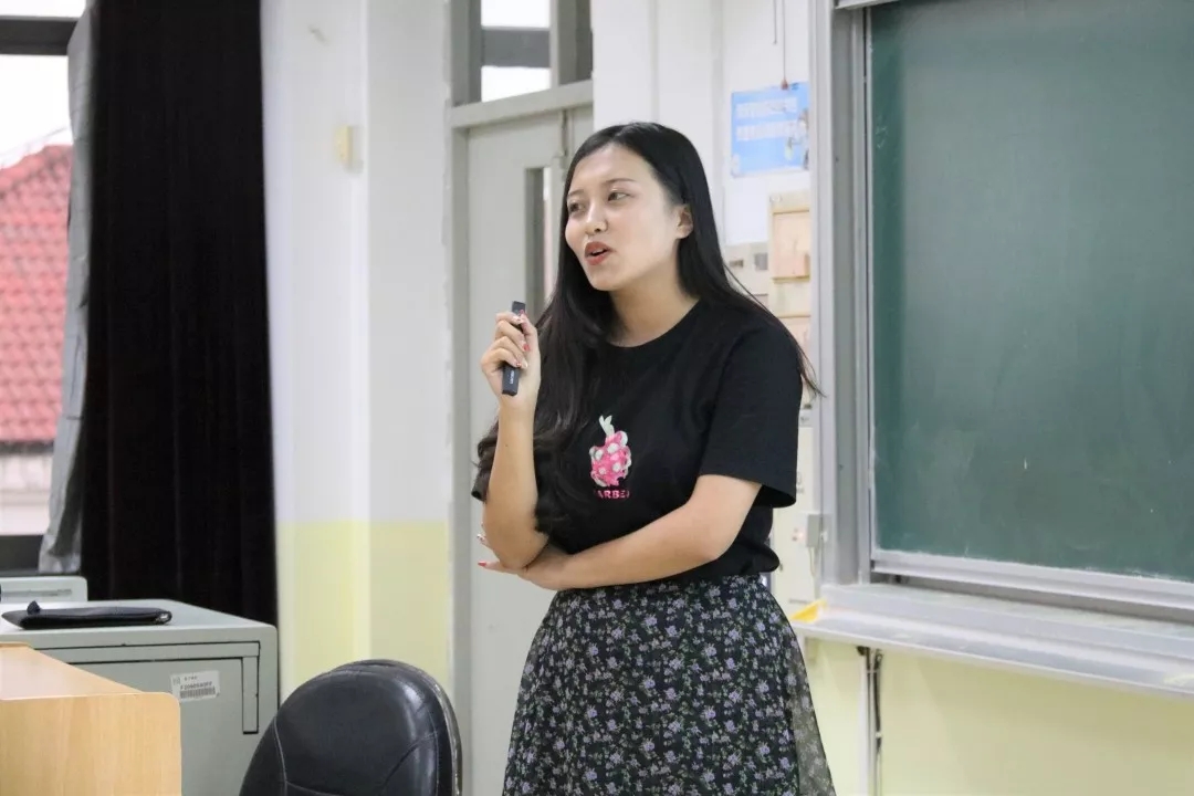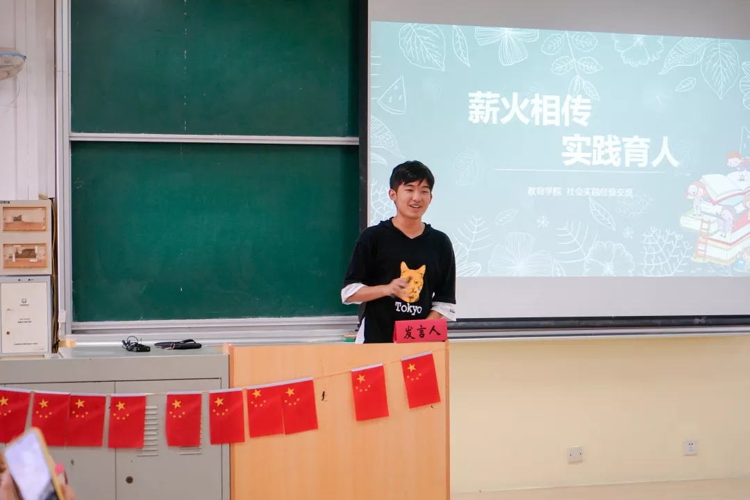首先,教育学院学生会实践部副部长郁祎旻同学以“薪火相传,实践育人”为主题,进行了社会实践方面经验的分享。