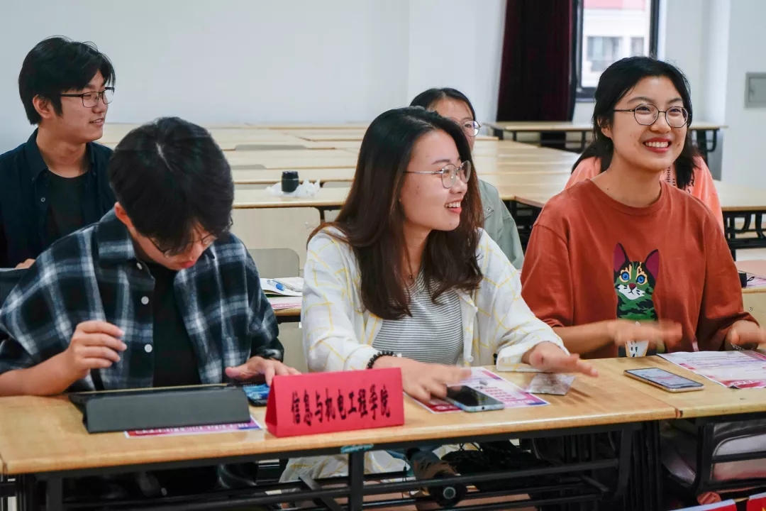 中场休息时间,大家开展了“赞美好伙伴”的趣味游戏,跟着节拍寻找身边学院的闪光点,活跃了现场气氛,深化认识。