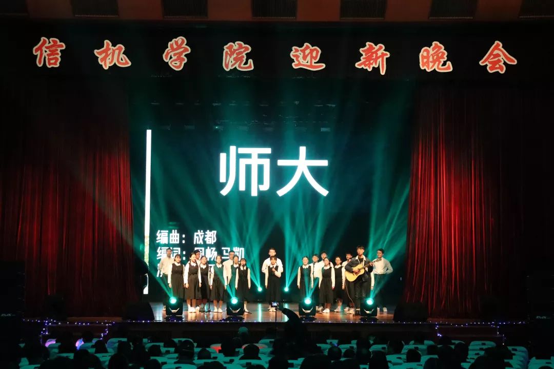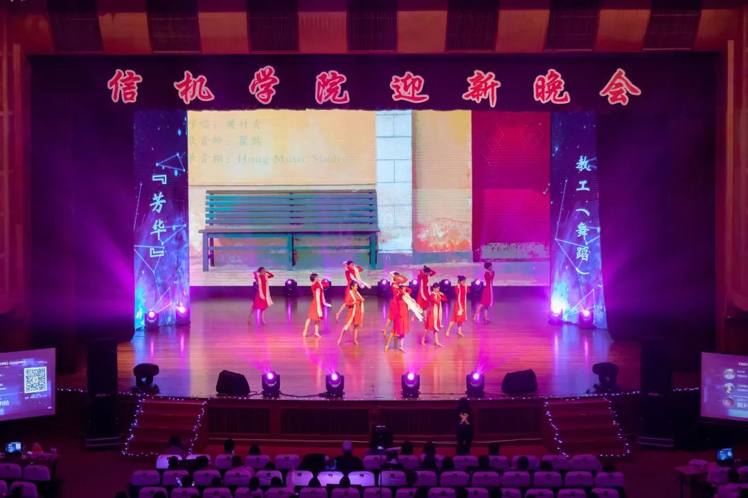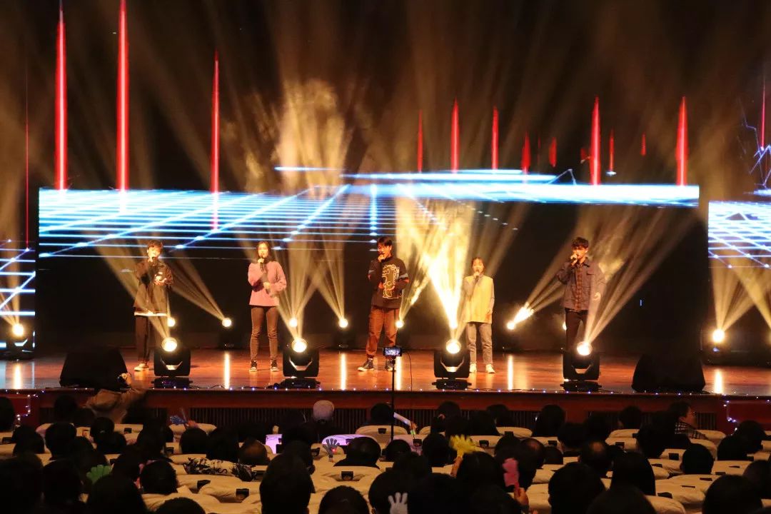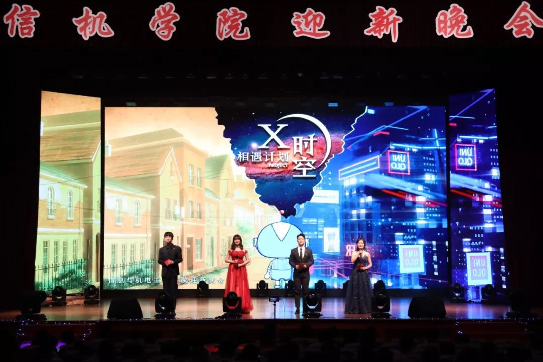 随着四位主持人的闪亮登场,迎新晚会拉开了帷幕!