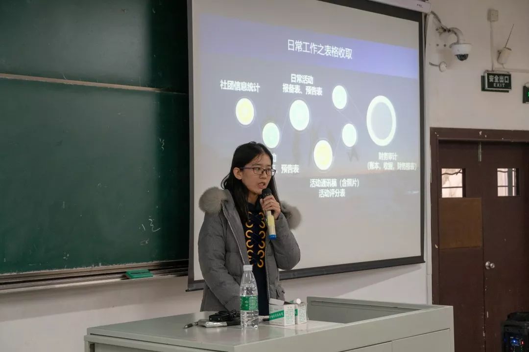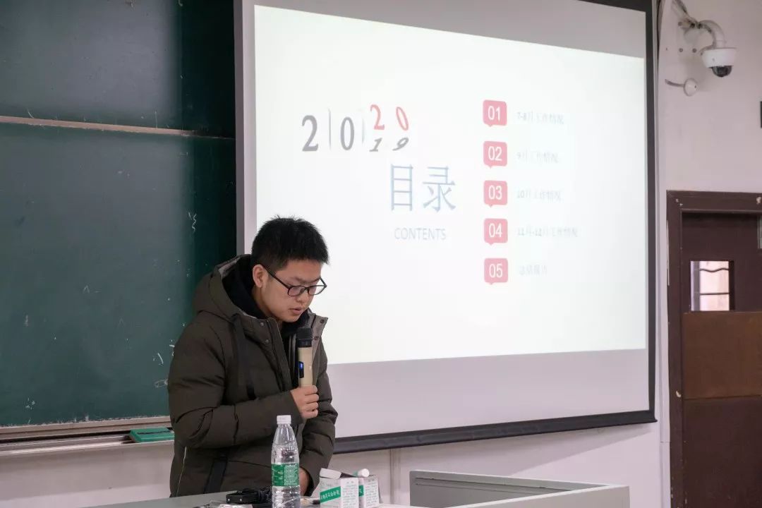 接着,外联部干事代替部长进行工作总结,清晰地讲述了本部门在各项工作中的优势与不足,提出“改善不足,奋勇向前”。由此可见,经过半学期的锻炼,干事们的能力已经得到了很大提升。